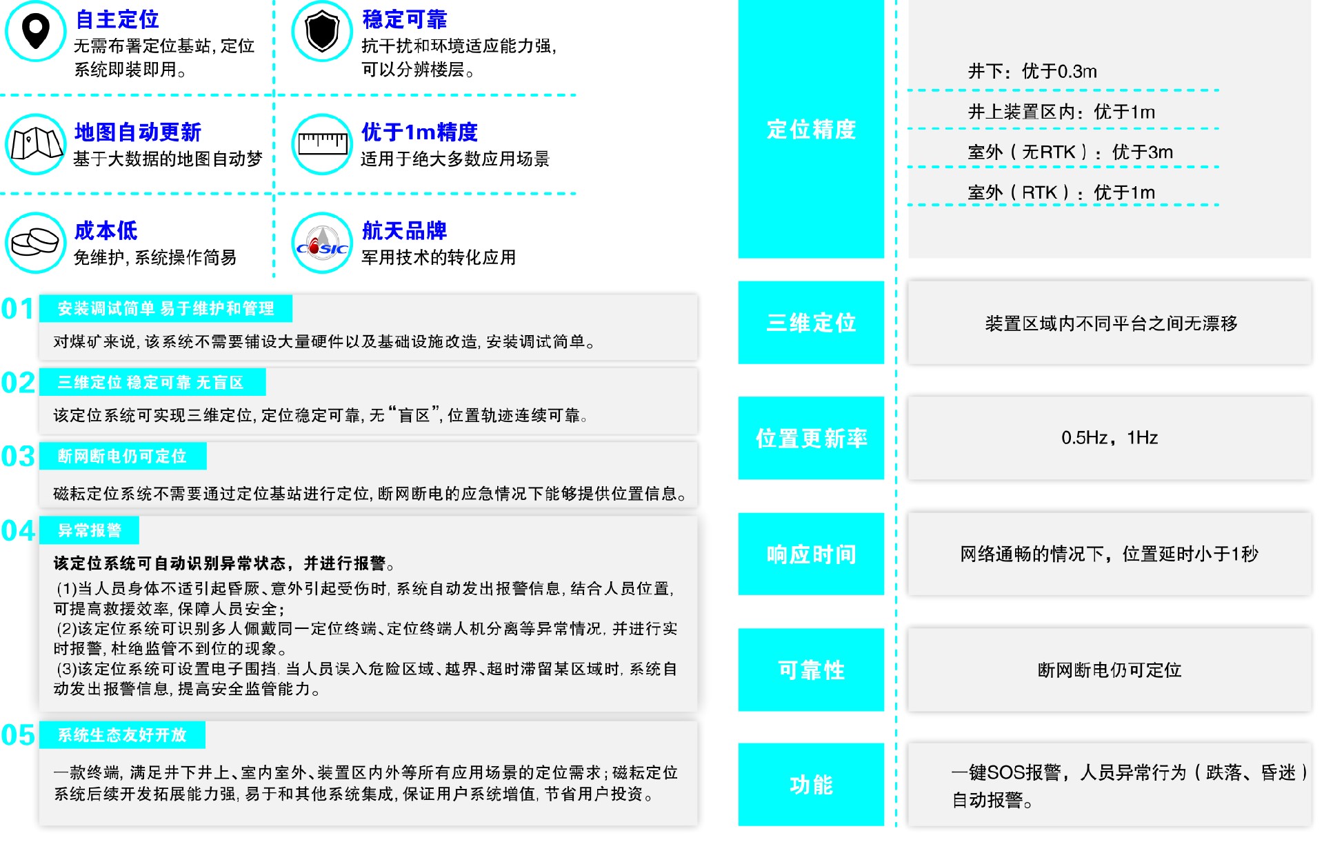 產品簡介:選煤廠主廠房、篩分破碎車間等建筑內的大型設備立體空間結構復雜、遮擋嚴重,眾多電氣設備特別是變頻設備存在大量諧波及電磁干擾,現(xiàn)有定位技術不適用于選煤廠的復雜環(huán)境。針對選煤廠的復雜環(huán)境特點,我公司首次研發(fā)了基于空間固有磁場特征的“磁耘”多源融合智能精確定位系統(tǒng)。該系統(tǒng)通過無源被動的自主導航定位,為選煤廠復雜環(huán)境提供了一種穩(wěn)定、高效且抗干擾的全新人員精準定位解決方案。“磁耘”多源融合定位系統(tǒng)是基于地磁技術的人員定位系統(tǒng),其基本原理是利用不同位置的固有磁場差異來確定人員位置信息,同時還融合了慣導、藍牙、北斗等定位技術,實現(xiàn)了室內外一體化定位。